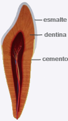 O dente é formado por 3 estruturas básicas, o esmalte, a dentina e o cemento. |